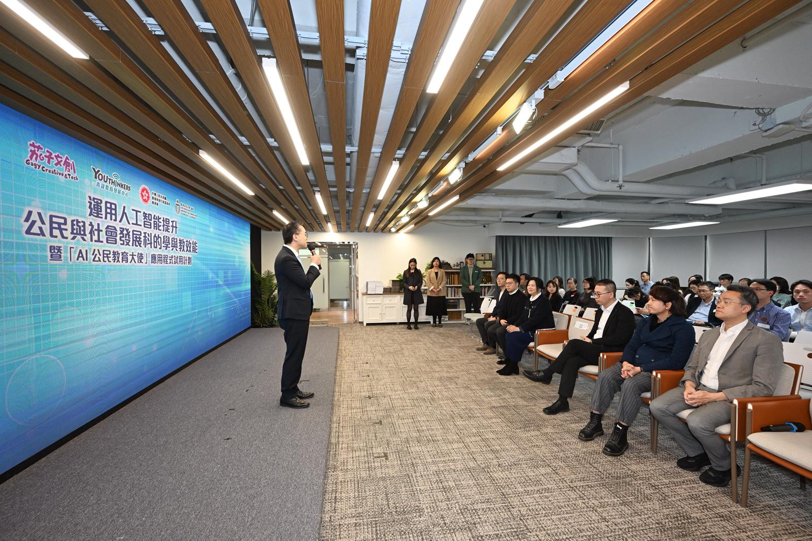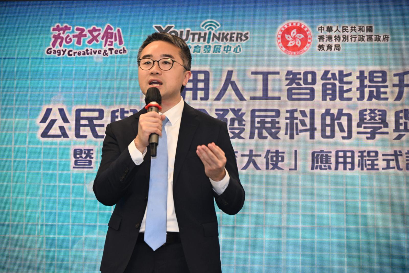 教育局副局長施俊輝表示,教育局致力促進數字教育,積極聯同專業團體推進人工智能教育,包括強化教師專業培訓,加強生成式人工智能應用於學與教。這次教育局課程發展處舉辦的教師專業發展課程,特別應用生成式人工智能於公民與社會發展科,並作現場示範。